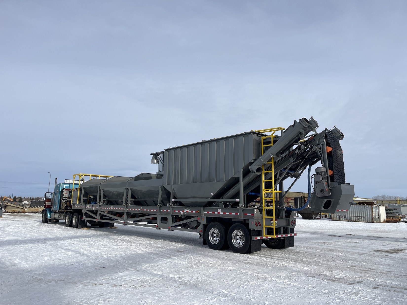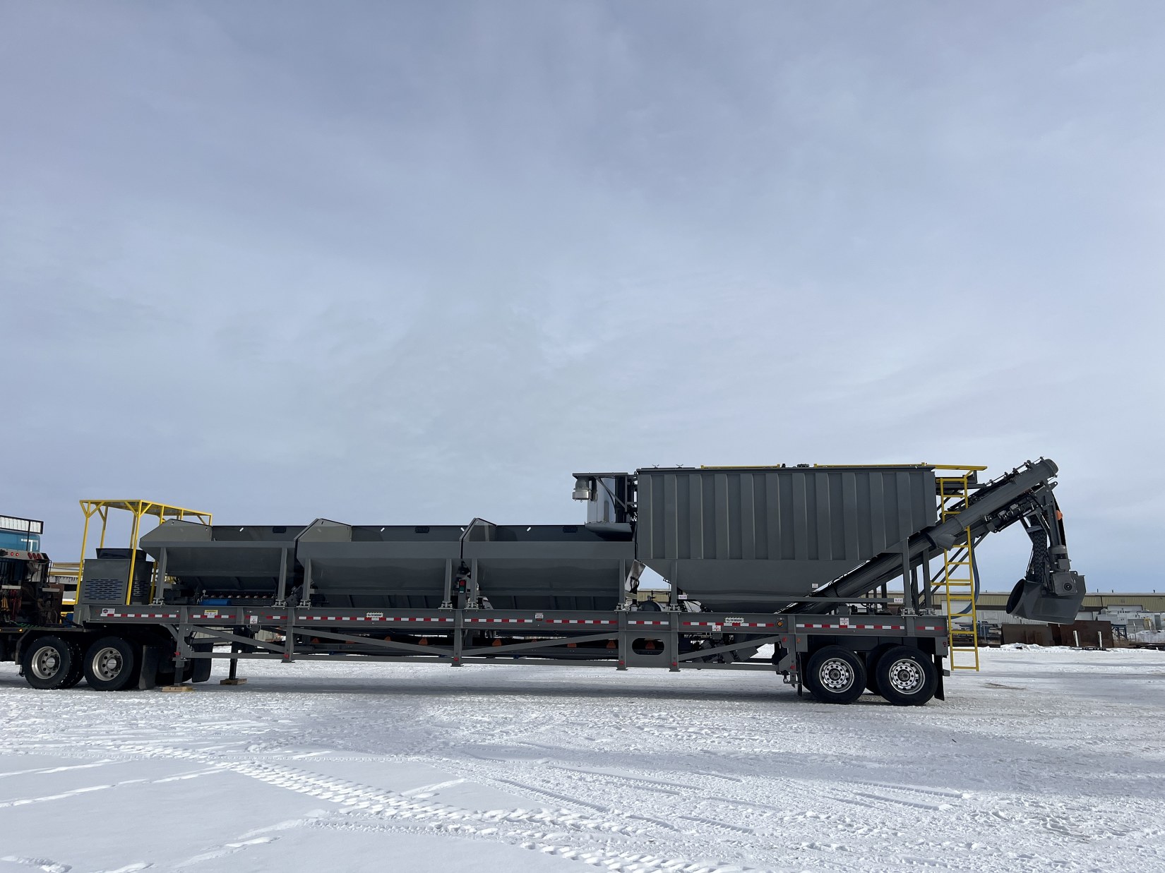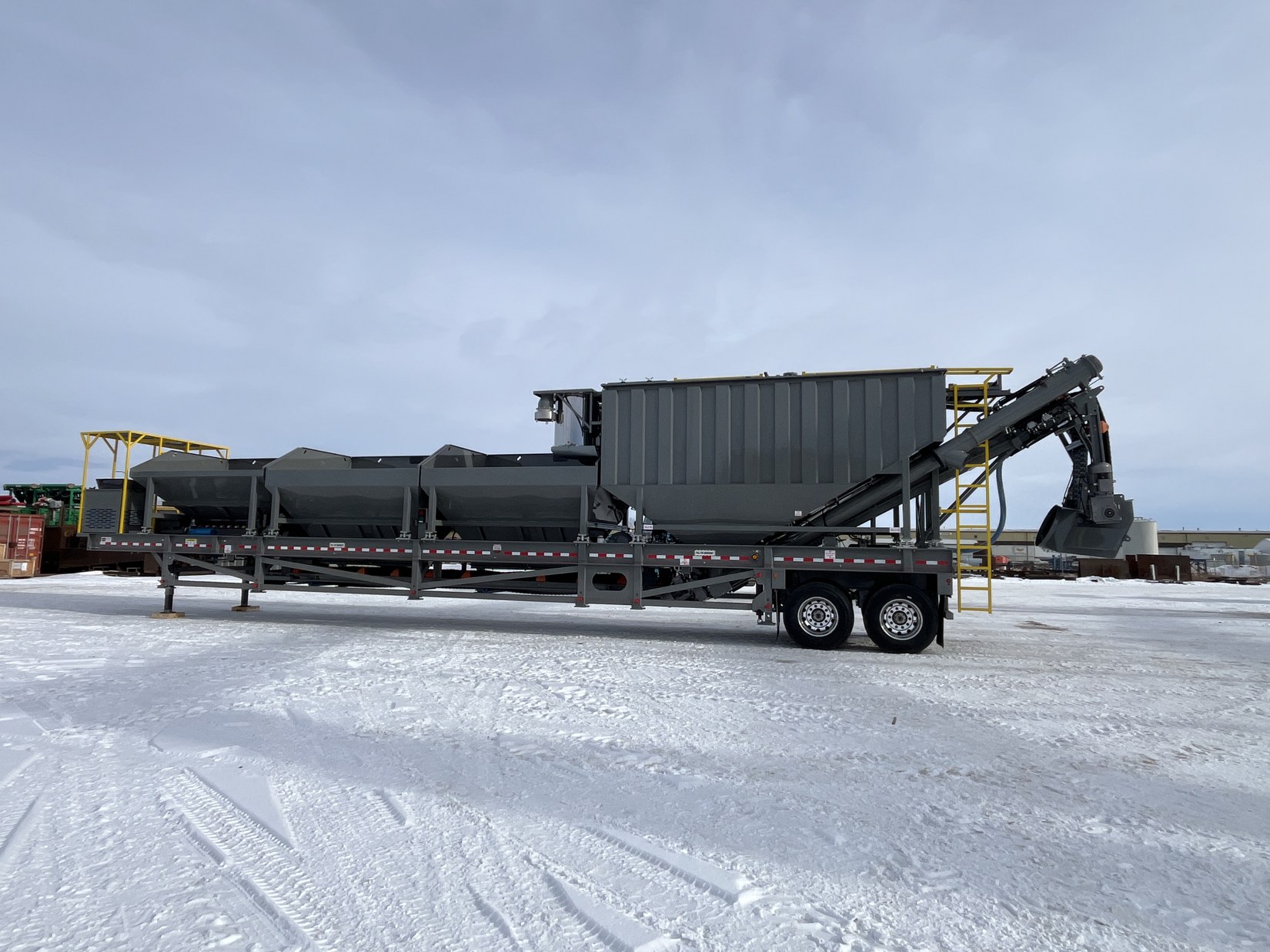 The new MIX 1200 features three aggregate bins and two independently operated powder silos. Our extensive experience in batch plant manufacturing has enabled us to develop this new generation of enhanced portable batch plants. The innovative design eliminates the need for silos to be elevated, making the plant setup both safer and easier. The MIX 1200 can be loader-fed without requiring a ramp, which further reduces the operational footprint. With full 180-degree access, the plant can function as either a “back/drive in” or “drive-through” operation.